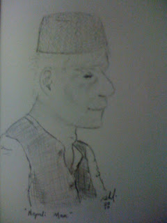 I drew this picture. It is a typical Nepali man. The hats they wear
