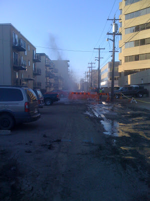 The 100 year old water main shot filthy water thirty feet in the air.