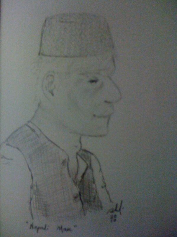 I drew this picture. It is a typical Nepali man. The hats they wear